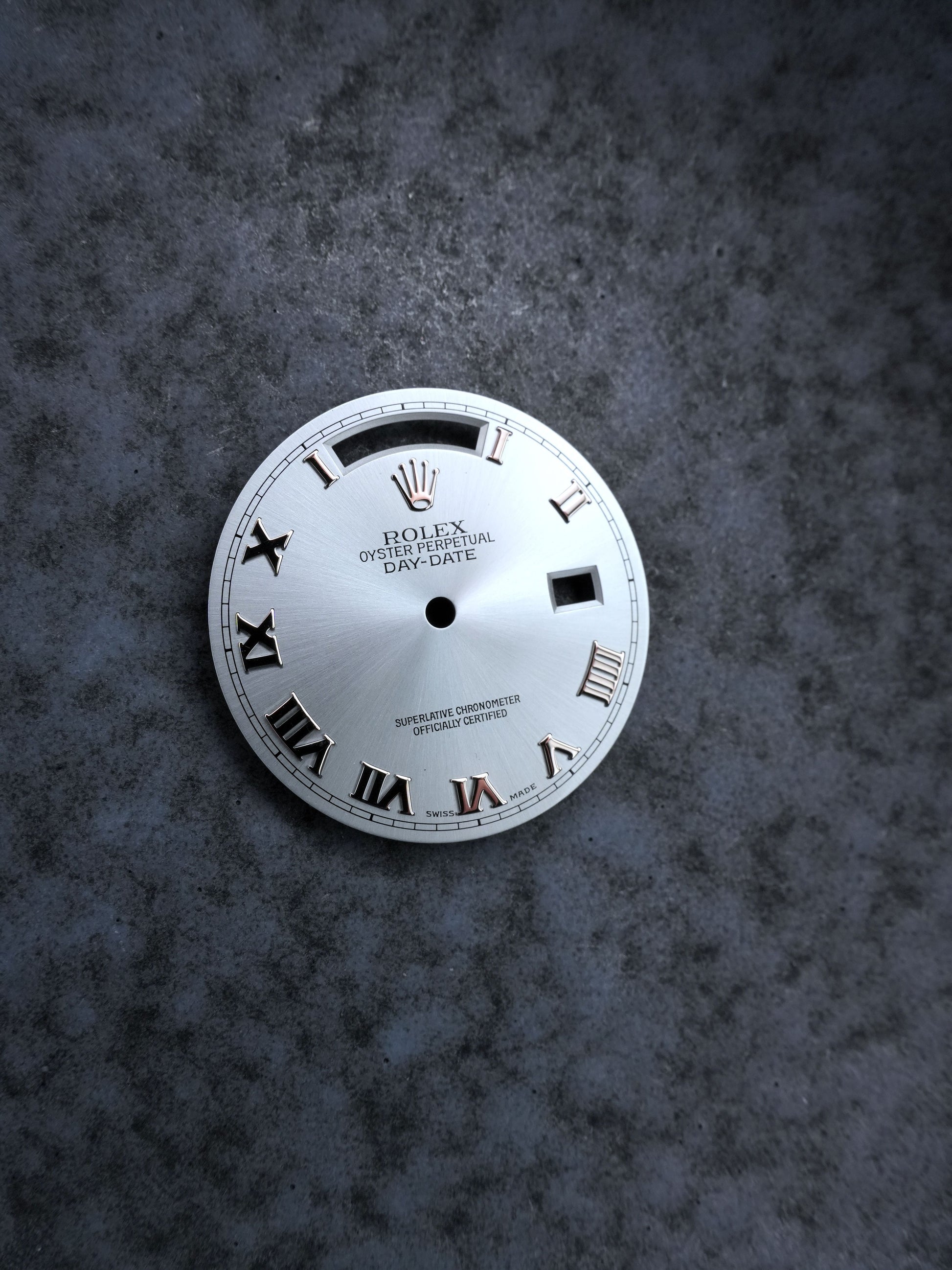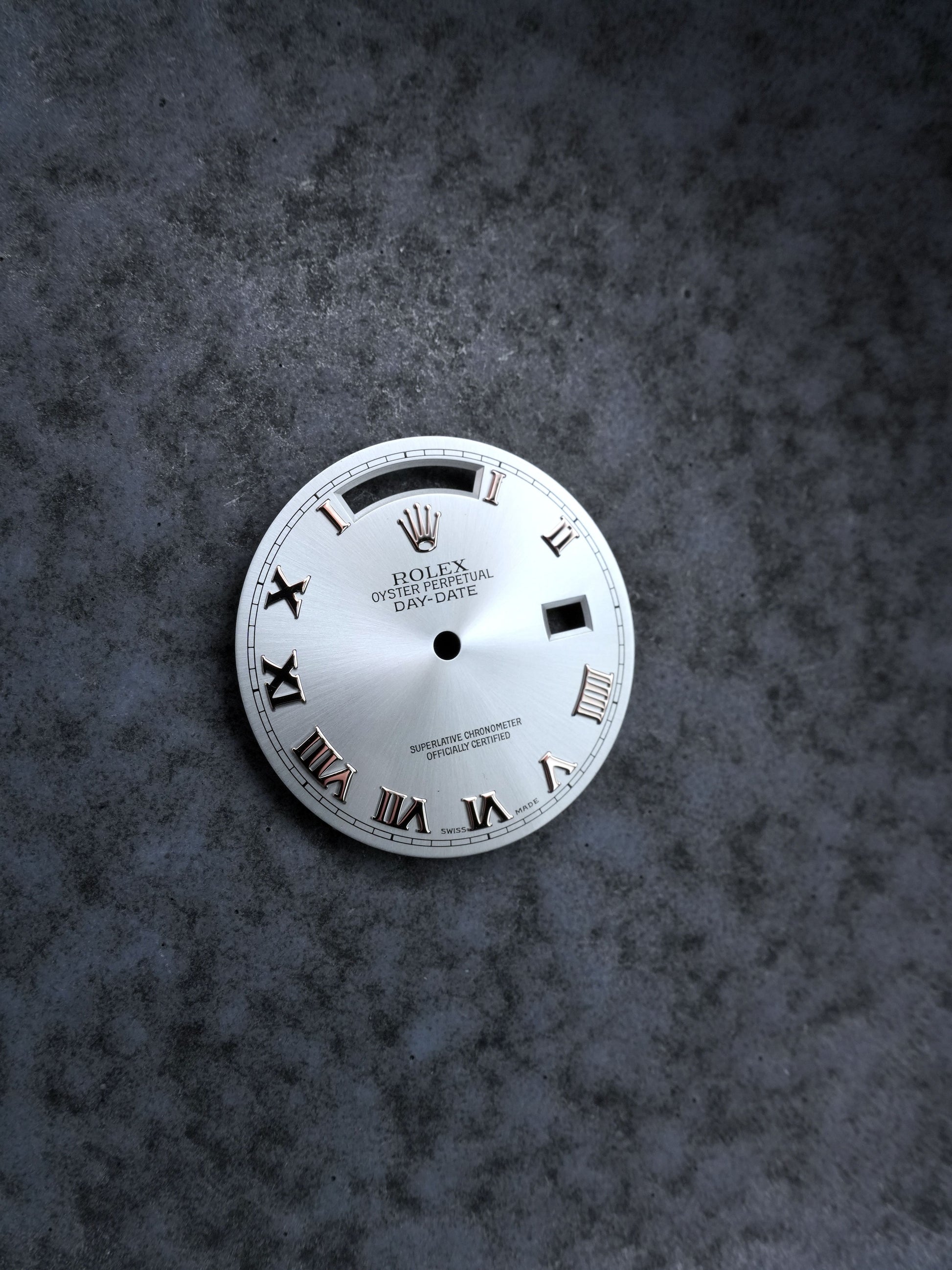Rolex NOS Ice-blue Roman dial for Day-Date references 18206 and 118206. Includes English Day Disc suitable for caliber 3155. Brand new, never mounted, in perfect condition.