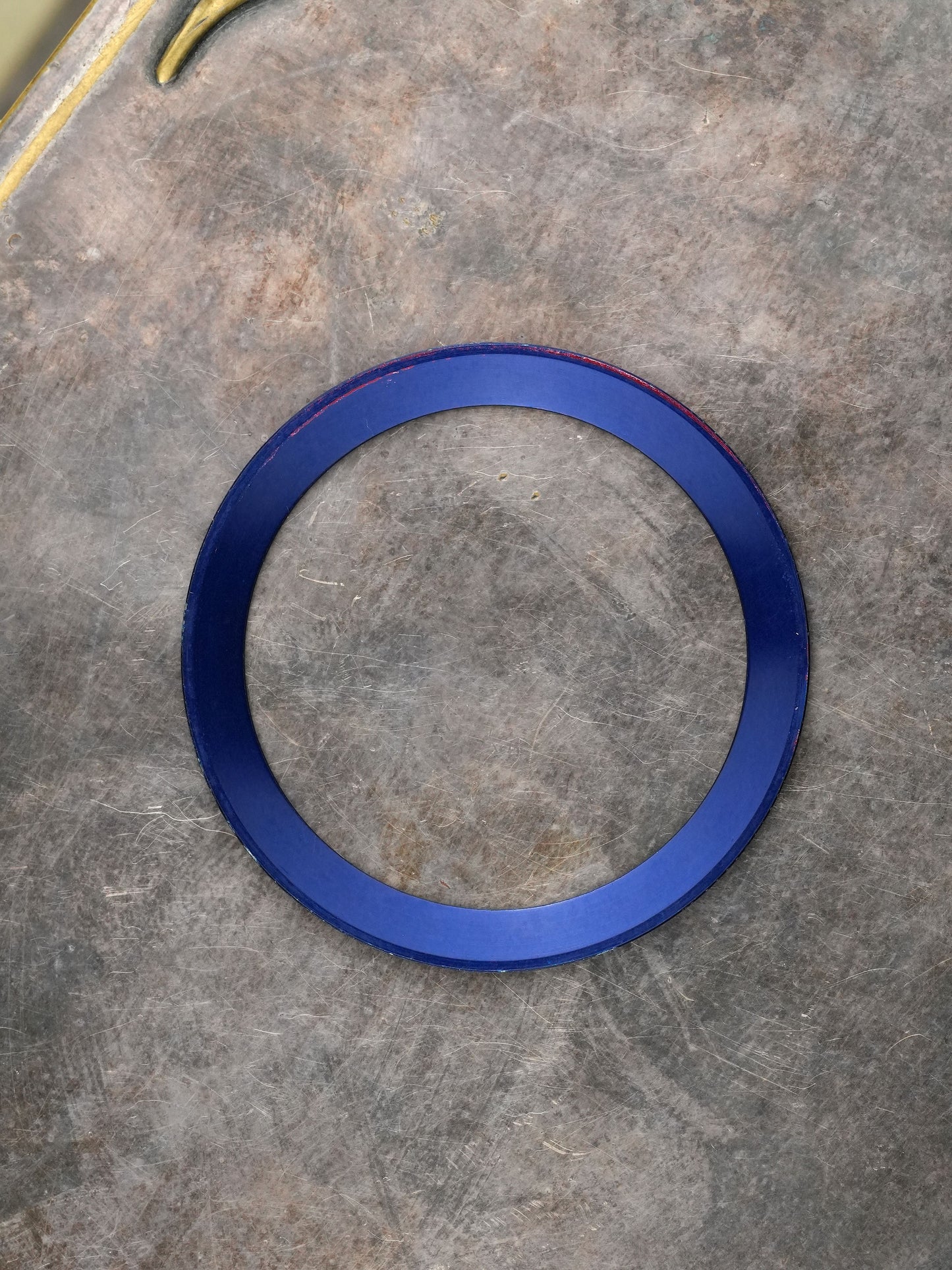 Rolex Fat Font Serif Inlay mit wunderschönem Fading in kaminrot und blauer Rückseite. Einige leichte Gebrauchsspuren sind vorhanden, dennoch hat das Inlay eine tolle Ausstrahlung.
