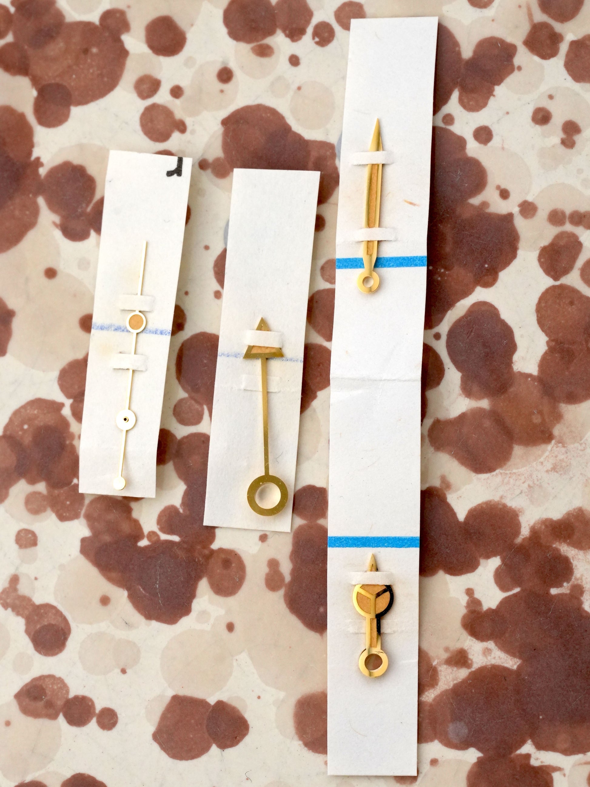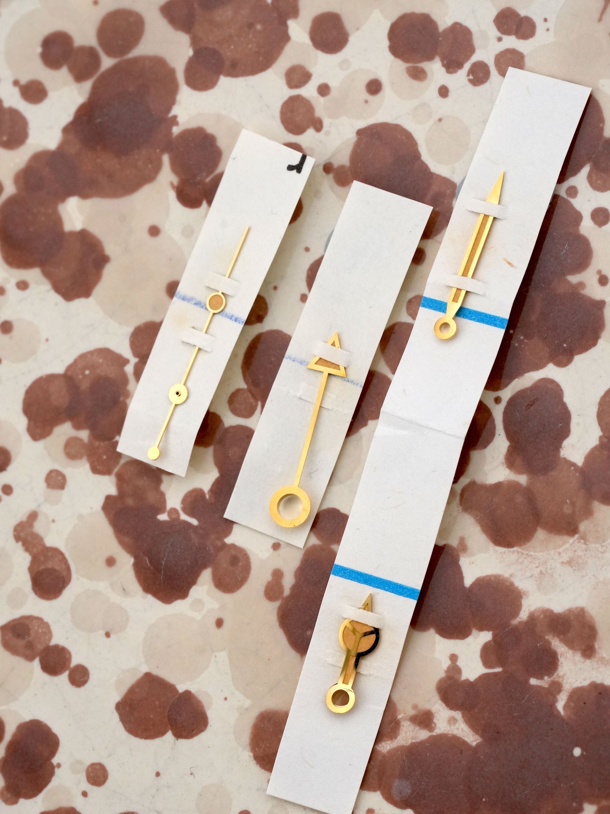 Rolex NOS Pumpkin Patina Zeigersatz für GMT 1675/8 und 1675/3. Tritium-Leuchtmasse. Perfekter NOS-Zustand, ist neu und wurde nie montiert, auf Karte.
