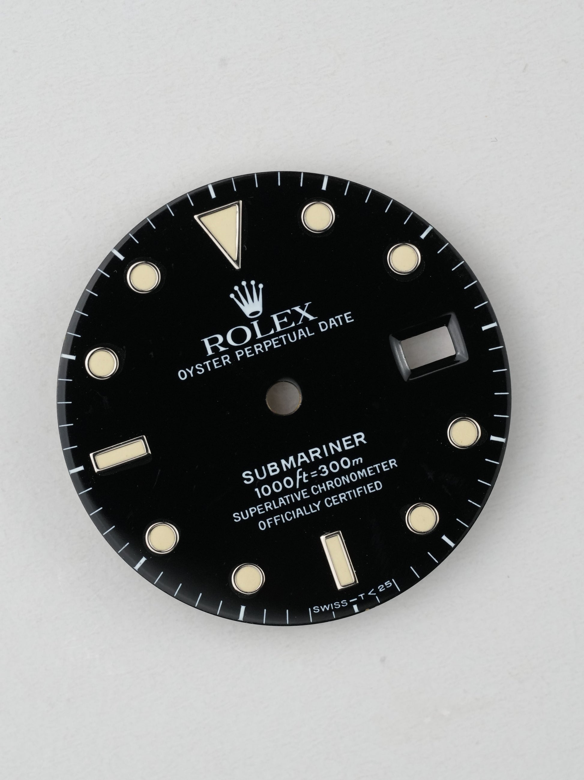 Rolex Submariner Zifferblatt (schwarz) passend für Referenzen 16610, 16800 und 168000. Tritium mit schöner Patina. Gebrauchsspuren/Alterspatina vorhanden, sehr attraktiv für Sammler vintage Submariner.